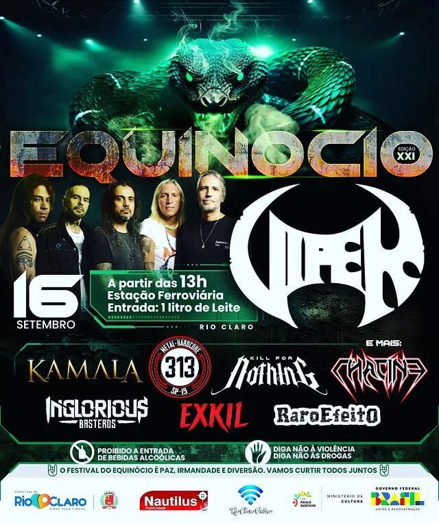 21ª Edição do Equinócio Rio Claro com Viper, Kamala, 313, Kill For Nothing, Chacina, Inglorious Basterds, Exkil e Raro Efeito