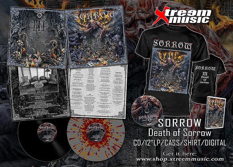 As pré-encomendas de ‘Death of Sorrow’ já estão disponíveis em vários formatos, incluindo CD, LP de 12″ (splatter e preto) e cassete. Uma camiseta especial de edição limitada também está disponível para os fãs.