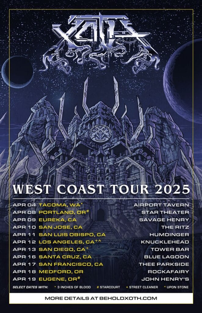 Os futuristas de death/thrash/black metal, XOTH , estão felizes em anunciar sua turnê pela Costa Oeste dos EUA, que começa na sexta-feira, 4 de abril, em Tacoma, WA, onde a banda dividirá o palco com o lendário 3 Inches of Blood .