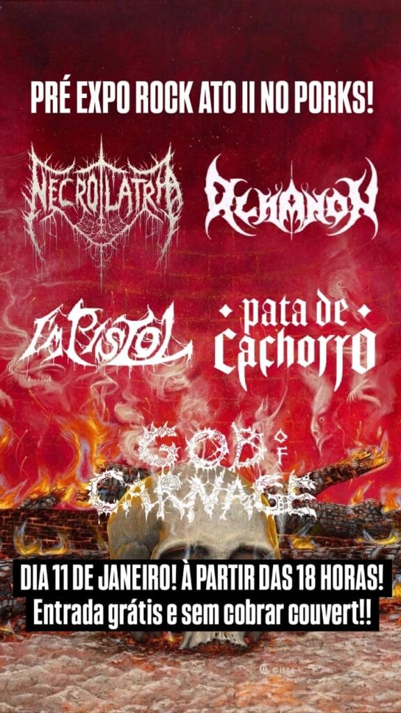 - Show:ALMANON no Necrolatria, God Of Carnage, I’m Pistol e Pata de Cachorro no ‘Pré-Expo Rock Ato II’