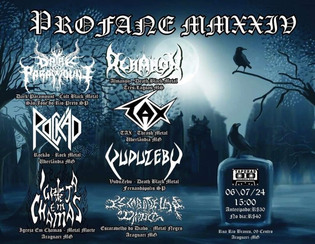 Em paralelo, o ALMANON foi confirmado recentemente no ‘Profane MMXXIV’, evento marcado para acontecer no dia 06/07/2024, a partir das 15 horas, em Araguari/MG, que contará também com as bandas Dark Paramount, Rockão, Tax, Igreja Em Chamas, VuduZebu e Escaravelho do Diabo. Confira abaixo o cartaz e serviço completo para mais informações: