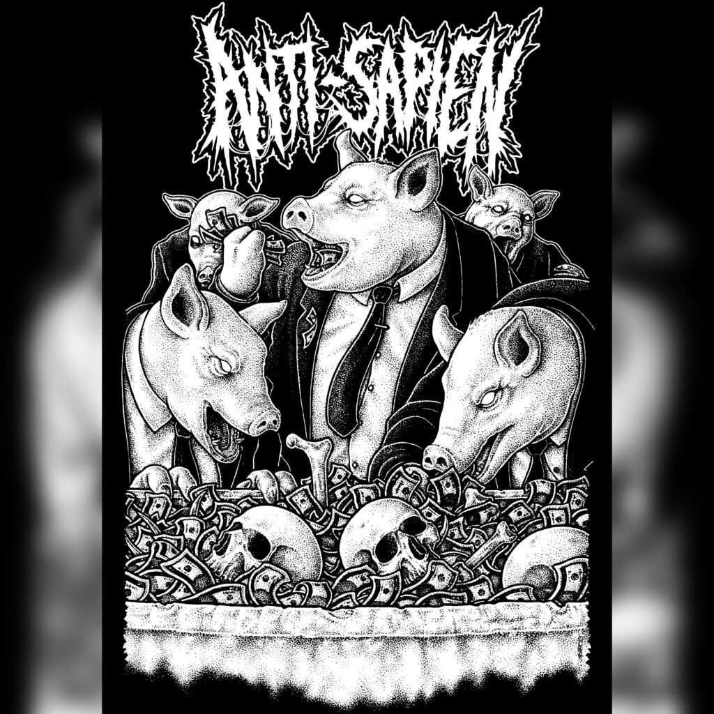 A ANTI-SAPIEN se formou no Brooklyn em 2021 e cresceu rapidamente, de um experimento informal durante a pandemia para uma força em turnê conhecida por seus riffs de death crust sujos, shows intensos e uma mensagem que se destaca em meio ao ruído. A banda começou como uma forma de amigos extravasarem e comporem músicas brutais e divertidas que misturavam seu amor por D-beat punk, death metal, grindcore e a clássica tradição do slam metal nova-iorquino. O que os surpreendeu foi a rapidez com que o público se conectou não apenas com a intensidade, mas também com a honestidade. Os jovens responderam aos riffs, mas também aos momentos entre as músicas em que a banda falava abertamente sobre desigualdade, exploração e os sistemas que oprimem as pessoas. Essa conexão impulsionou a ANTI-SAPIEN a levar o projeto adiante, aprimorar seu som e pegar a estrada com tudo pelos Estados Unidos e, eventualmente, pela Austrália, Coreia do Sul e Japão.