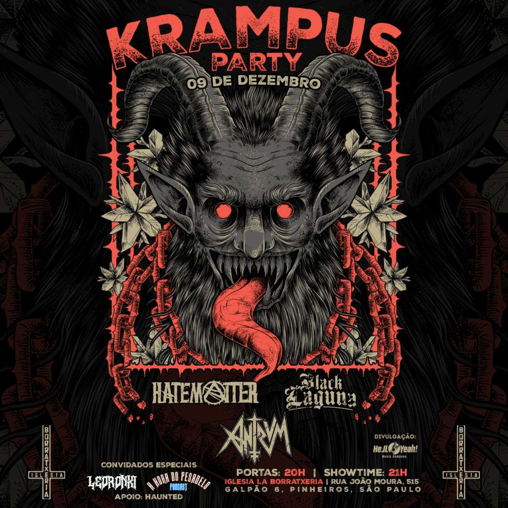 Encerrando o ano de 2023 em altíssimo nível, as bandas Antrvm, Hatematter, Black Laguna se uniram para realizar o Krampus Party, ou como vem sendo chamado o evento: “A Festa da Firma do Metal“. A proposta da festa é unir música, entretenimento e intercâmbio de ideias da cultura underground.