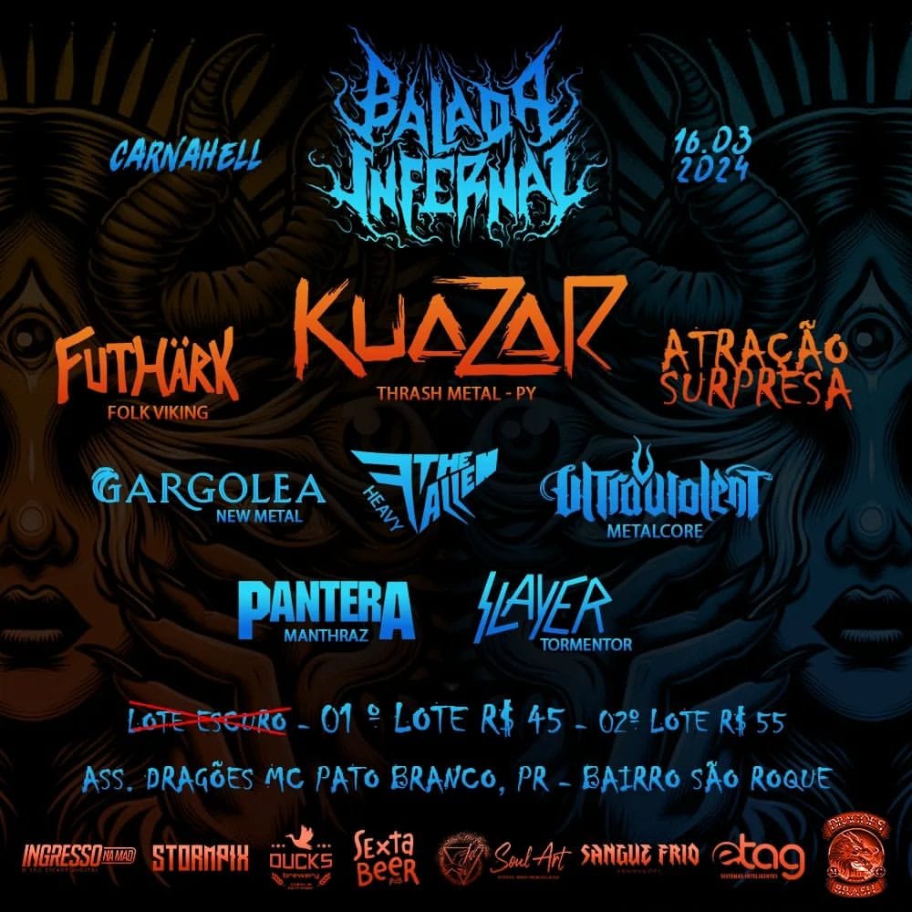 Sites, blogs, rádios, revistas e até influencers digitais podem fazer a cobertura desta pesada edição, que acontece no dia 16/03/2024 em Pato Branco/PR e contará com nada mais nada menos que KUAZAR, GHOST CWB, FUTHÄRK, ULTRA VIOLENT, THE FALLEN, GARGOLEA, MANTHRAZ e TORMENTOR, preenchendo o formulário abaixo ou acessando o press release do evento AQUI: https://sanguefrioproducoes.com/eventos/BALADAINFERNALEventoabertoparacredenciamentodeimprensasaibamaisaqui/6