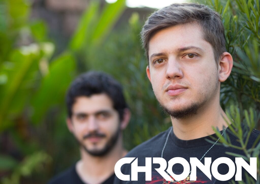 Christhopher: O David e eu nos conhecemos por coincidência, pois trabalhamos na mesma empresa em áreas relativamente próximas. Lembro de um dia ter visto alguns posts dele tocando death metal e aí de curioso que sou comecei a conversar com ele sobre música. Já de cara vimos que tínhamos o gosto musical bem parecido e inclusive influências tanto de guitarra quanto de outros instrumentos e banda como um todo. Quando marcamos de fazer as primeiras jams, acabávamos também conversando sobre astronomia, física, matemática. E aí dessa mistura toda a gente chegou no Chronon e nessa temática do projeto. Hoje contamos também com o batera Thiago Nogueira que entrou no projeto durante as gravações.