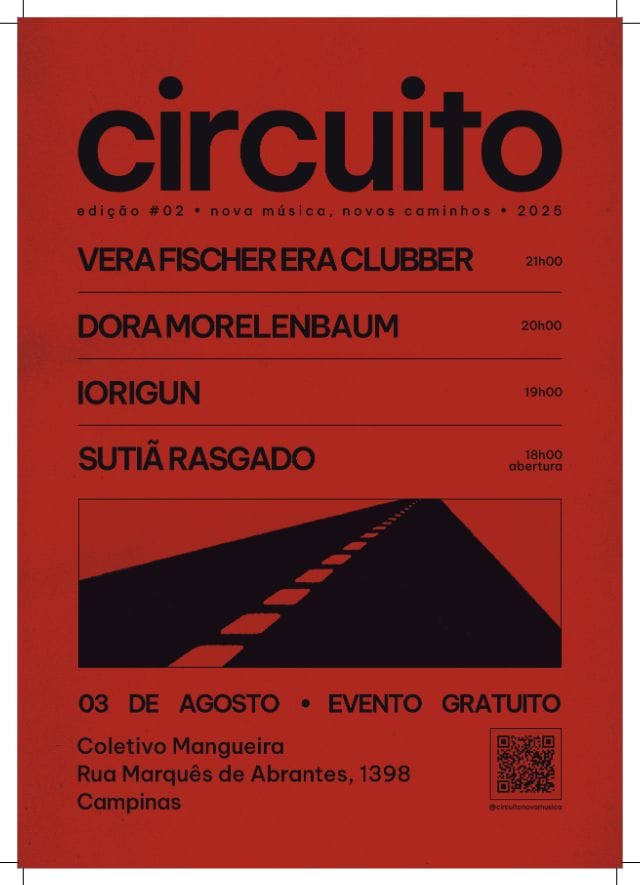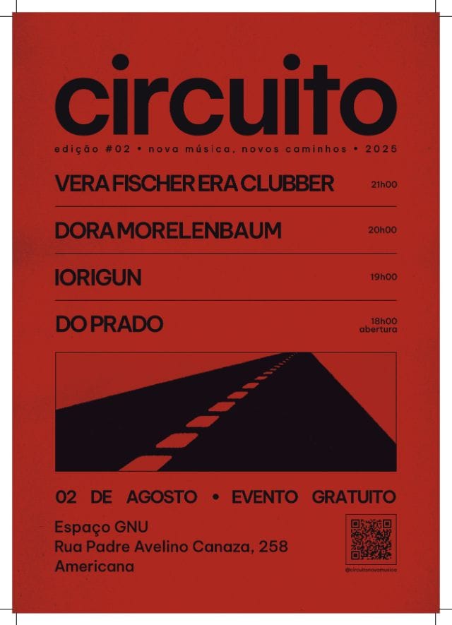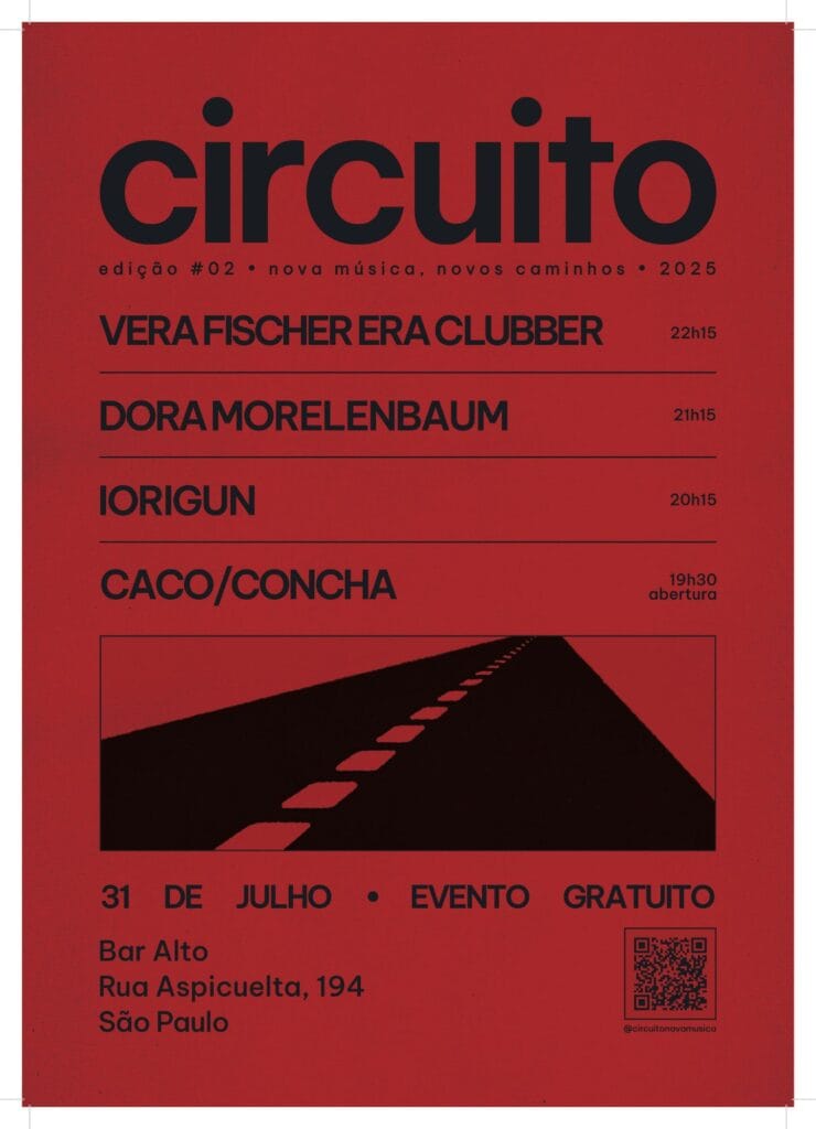 “O Circuito #02 vem aí com uma nova leva de artistas, com gente talentosa, cheia de energia e vontade de mostrar o novo. Estamos animados para pegar a estrada mais uma vez e levar essa galera incrível para novos caminhos, inclusive fazendo a estreia em São José dos Campos, uma cidade com uma cena notável que merece destaque. Mais que música, é troca, estrada, encontros e movimento. Depois de uma edição #00 intensa e uma #01 ainda mais potente, a nova trip promete ainda mais. A cena precisa circular, e a gente vai fazer isso juntos”.