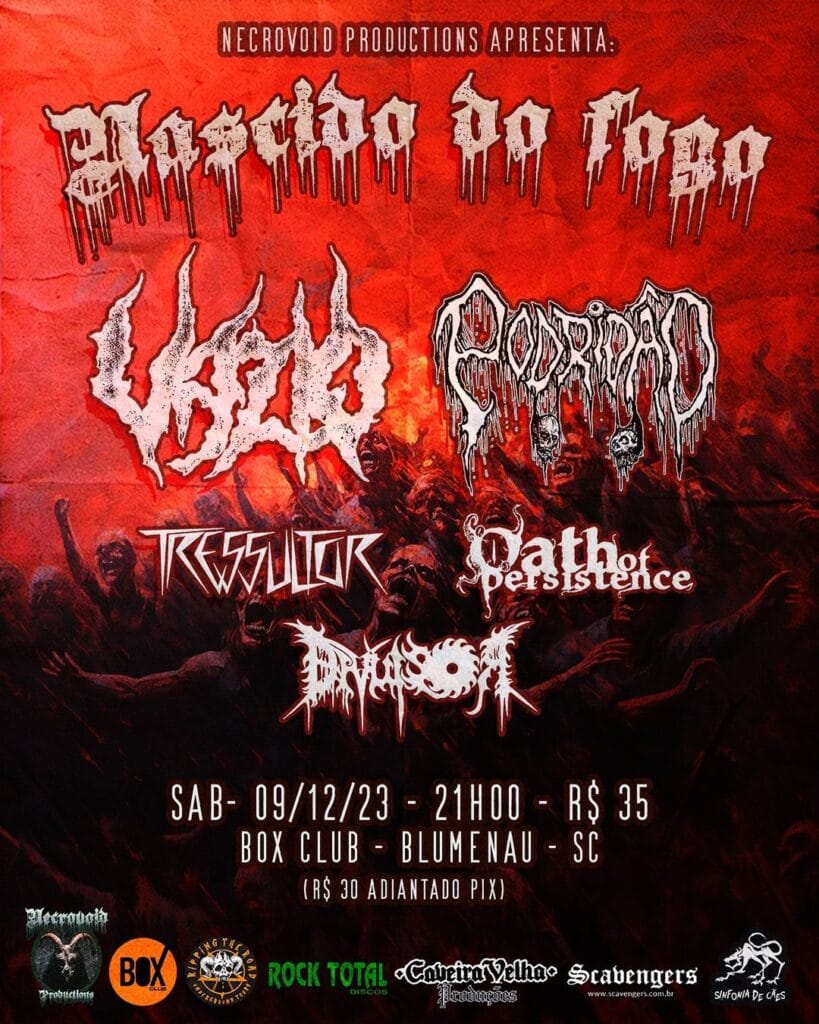 Para o dia 09 de Dezembro o evento Nascido do Fogo levará Vazio, Podridão, Tressultor, Oath ot Persistence e Divulsor que acontecerá na Box Club em Blumenau/SC.