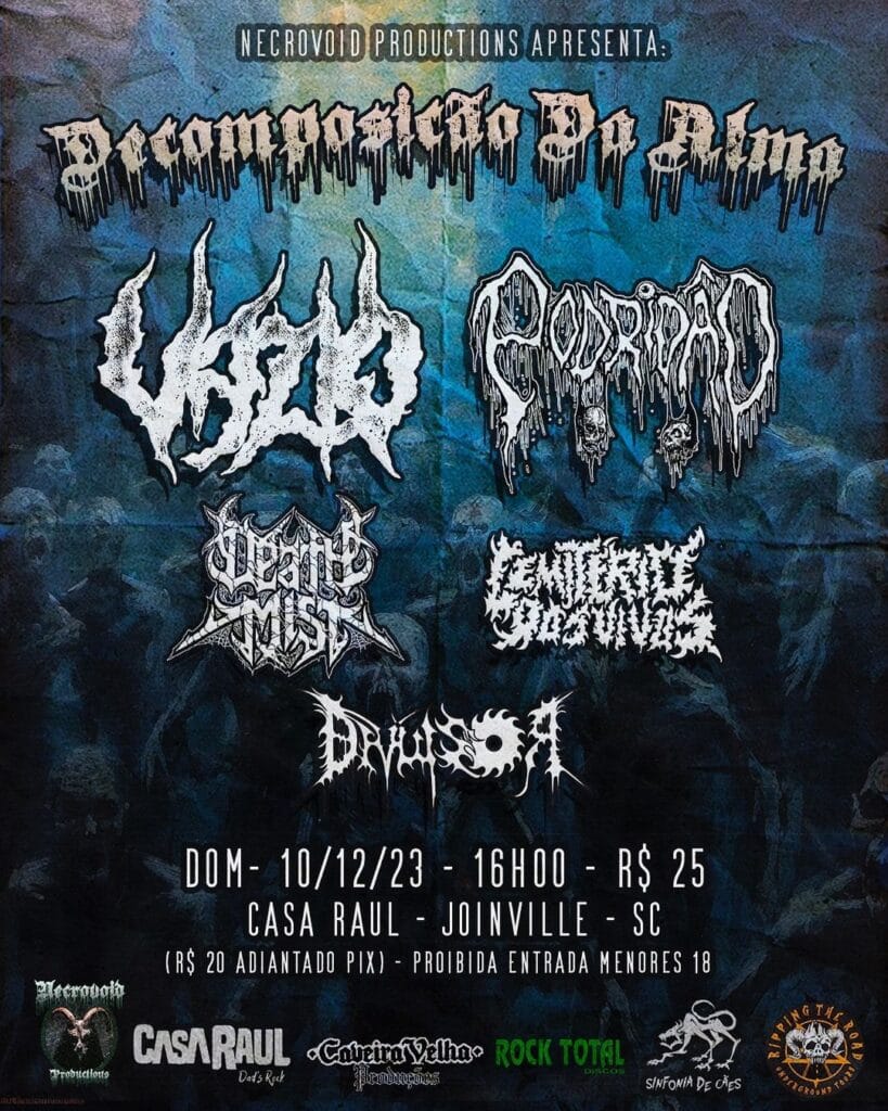 No domingo dia 10 o evento continuará com evento Decomposição da Alma em Joinville/SC mas na Casa Raul com as mesmas headliners Vazio e Podridão que contará ainda com Divulsor, Cemitério dos Vivos e Death Misth.