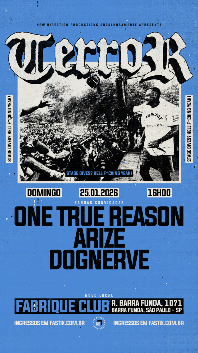 Terror, de Los Angeles (EUA), sempre foi sinônimo de hardcore potente, com mensagens diretas, riffs e breakdowns alucinantes. Desde sua formação, em 2002, a banda demonstra um nível de dedicação inabalável e inspiradora dentro da cena mundial e enfim retornam ao Brasil, em janeiro de 2026, com dois shows: em São Paulo, dia 25/01, no Fabrique Club (trocou de local após sold out), e dia 24/01 em Curitiba, no Belvedere.