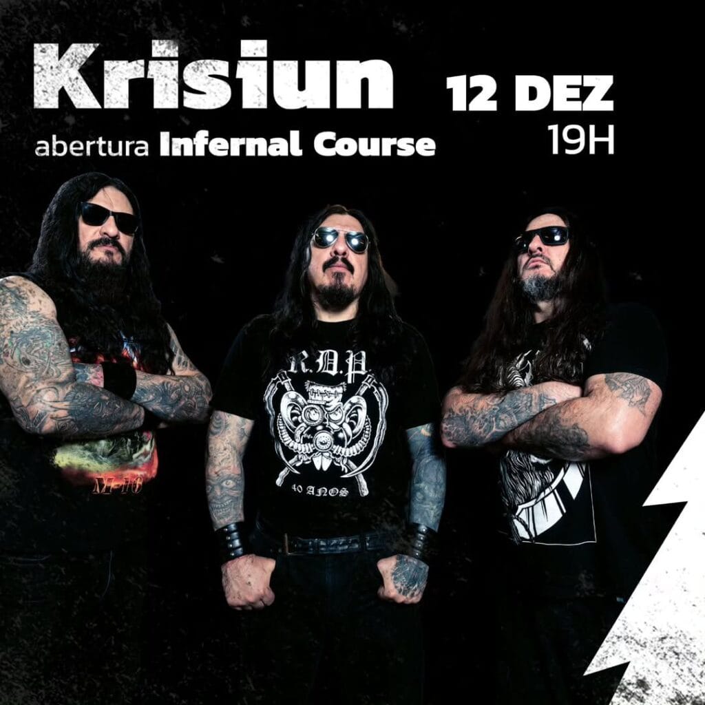 O “Metal em Concerto” do dia 12/12, próxima quinta-feira, reunirá apresentações de Infernal Course e Krisiun a partir das 19h. Já no dia 13, quem sobe ao palco do teatro do Sesc Sorocaba, são Warshipper e Crypta, também a partir das 19h. Os ingressos para os dois dias foram esgotados em horas.