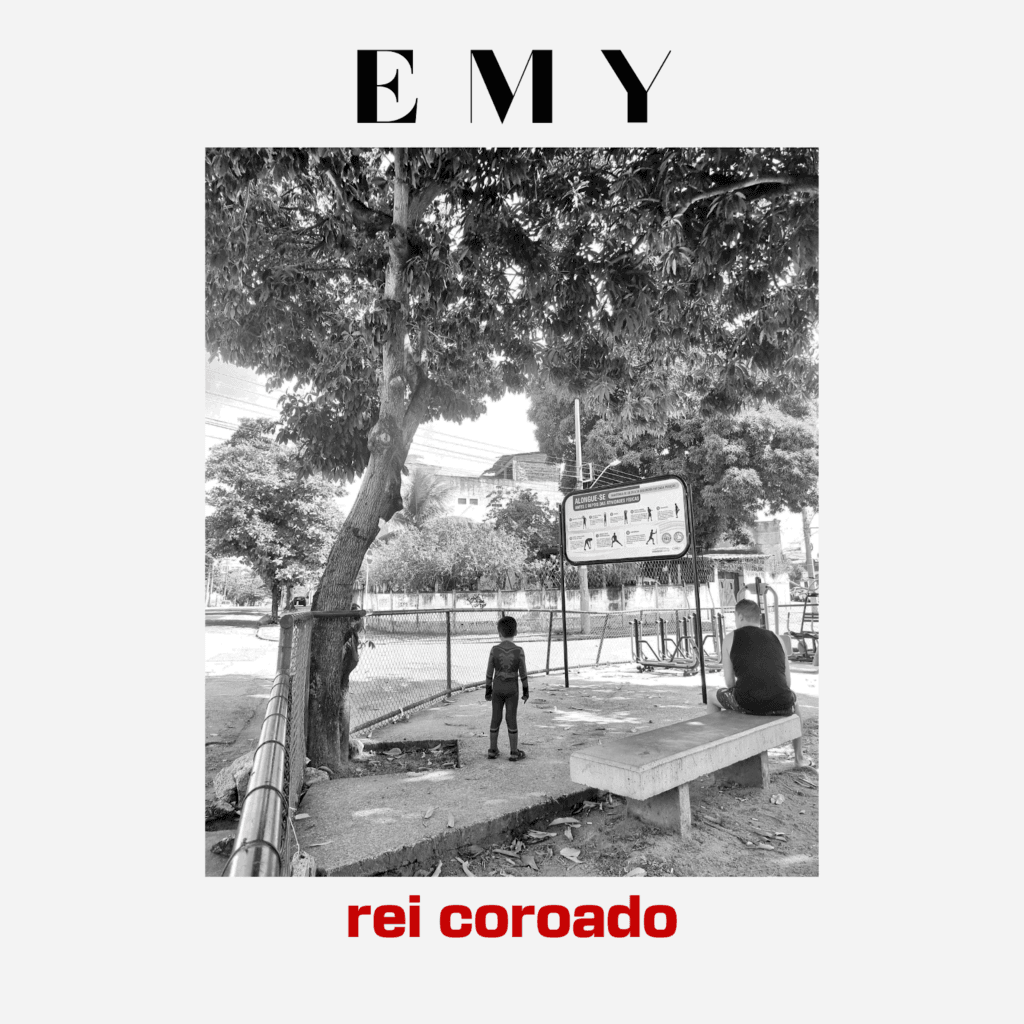 Com data de lançamento prevista para 24 de maio, a faixa rei coroado — primeiro single que marca a estreia solo do cantor e produtor carioca EMY — versa sobre o triunfo negro através da festa e da luta. Entre pontos de Ogum, sintetizadores e beats eletrônicos, sob forte influência do soul e do R&B, o single narra os angustiantes últimos momentos de uma comunidade cercada por seus inimigos e evoca a presença de Ganga Zumba, primeiro líder do Quilombo de Palmares e figura não tão distante dos corpos pretos que habitam os subúrbios dos grandes centros urbanos. Embrenhando-se por passado e presente, morte e vida, o falsete luminoso de EMY desenha um realismo fantástico no qual celebração e combate marcham em uníssono. “rei coroado é festa, luta e reza”, comenta EMY: “É invocar o passado e fazer dele arma e escudo em defesa do nosso presente”.