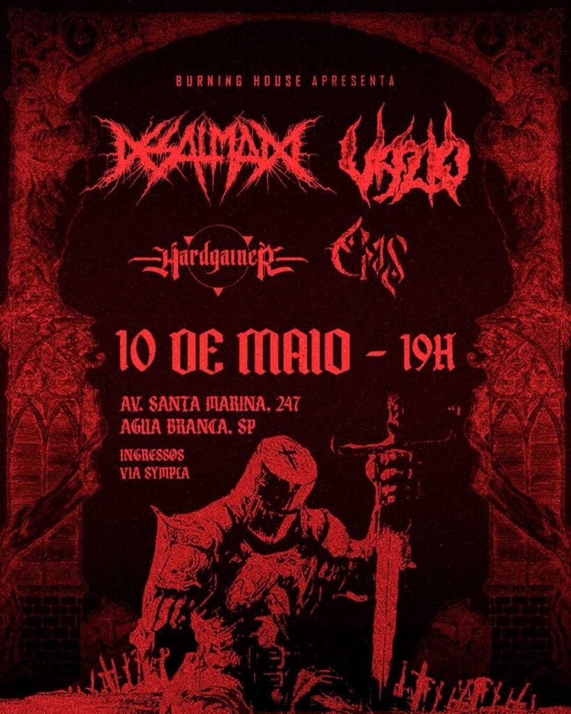 Próximos shows do Desalmado10/05 – São Paulo/SP (Burning House) – Show de lançamento do álbum07/06 – Rio de Janeiro/RJ (Heavy Beer Bar)08/06 – São José dos Campos/SP (Hocus Pocus Studio Café)24/08 – Porto Alegre/RS (local a ser anunciado)