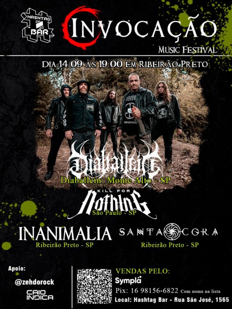 Trata-se do ‘INvocação Music Festival’, que colocará o quinteto ao lado de Kill For Nothing, Inanimalia e Santa Cora, no HashTag Bar, em Ribeirão Preto/SP, no dia 14/09, a partir das 19 horas. Confira abaixo o cartaz e as informações completas do evento: