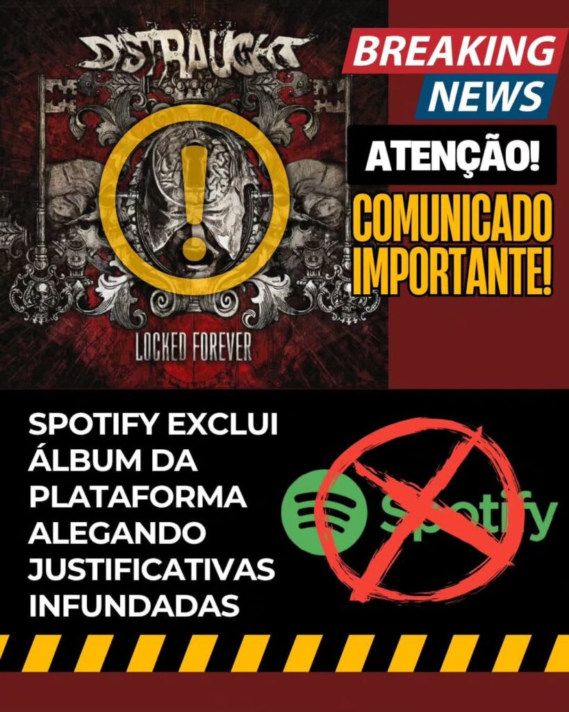 A banda gaucha de thrash metal Distraught usou as redes sociais para denunciar uma atitude polêmica do Spotify. O álbum “Locked Forever”, que completaria 10 anos em novembro de 2025, foi removido da plataforma de streaming sob a alegação de uso de “robôs” e “playlists falsas”, acusações que a banda nega veementemente.