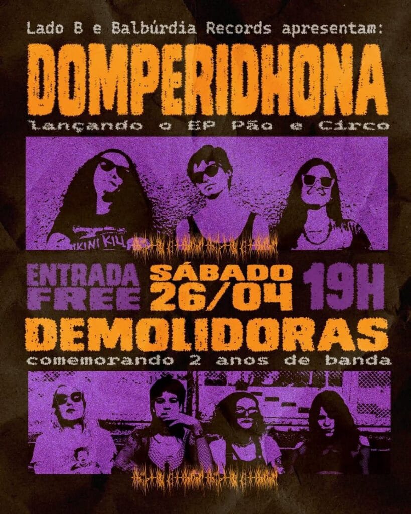 Evento: Lançamento do EP “Pão e Circo” da Domperidhona + Aniversário de 2 anos da Demolidoras