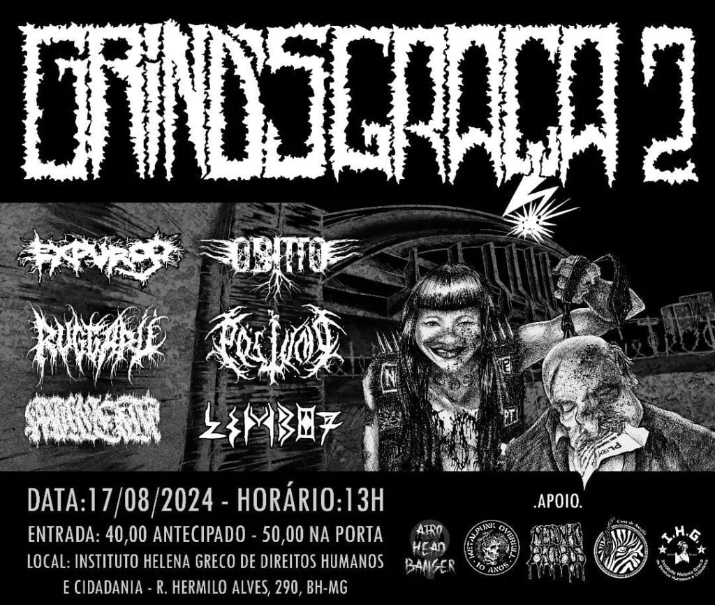 Neste sábado, 17 de Agosto, Belo Horizonte será palco da 2ª edição do Festival Grind’sgraça, promovido pelo Coletivo Grindsgraça, com as bandas capixabas Limbo7 e Ruggarü, as bandas paulistas Obitto e Pöstvmö , e os mineiros do Expurgo e Estranho.