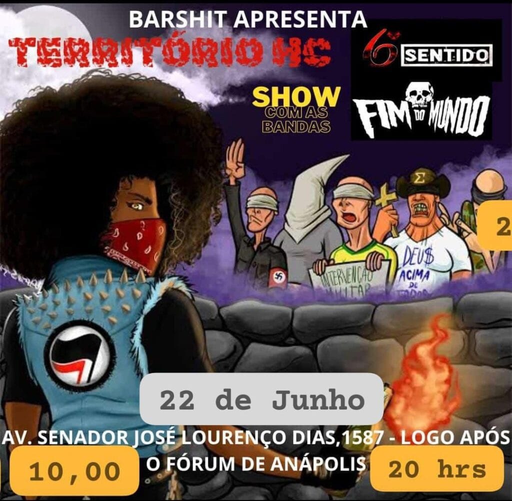 Mais um importante show de divulgação do álbum atual do FIM DO MUNDO, “Tarja Preta”, já tem data marcada. A banda pega a estrada rumo a Anápolis/GO, onde se apresentará no ‘Território HC’ neste fim de semana. O evento acontecerá no sábado (22/06), a partir das 20 horas, no Black Sabbar, e contará também com a participação dos goianos do 6º Sentido. Confira abaixo o cartaz e o serviço completo para mais informações:
