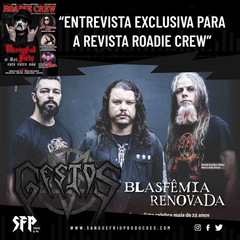 Em paralelo, o GESTOS foi destaque na edição #279 Março/Abril (com King Diamond na capa) da revista Roadie Crew, onde falaram um pouco mais sobre o início da carreira da banda, discografia, atual álbum e momento, projetos futuros e MUITO mais.