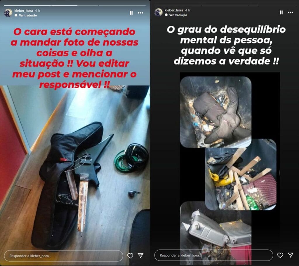 Ainda durante a manhã desta sexta-feira (05/07), Kleber Hora publicou em seus stories as fotos que, segundo ele, seriam dos instrumentos DESTRUÍDOS pela produtora Etrurian Legion Promotion, confira: