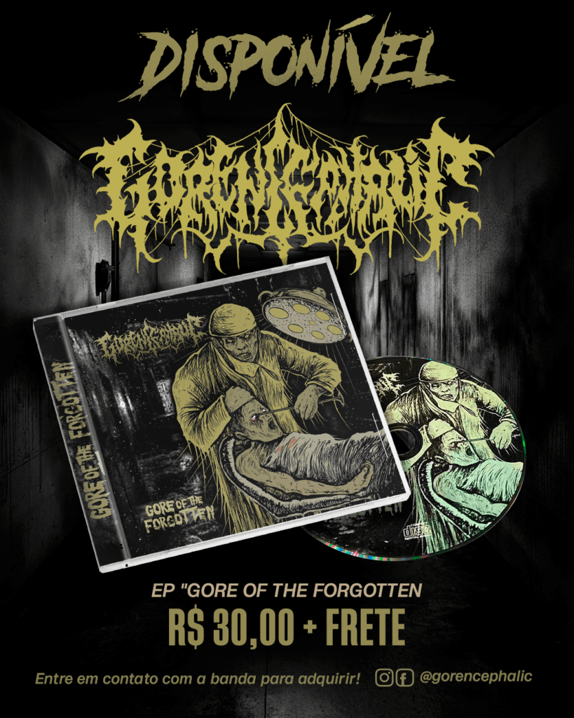 Com composições brutais, riffs cortantes e letras viscerais, o EP “Gore Of The Forgotten” reforça o protagonismo do GORENCEPHALIC no cenário do metal extremo brasileiro. A versão física, à venda por R$ 30,00 (+ frete), inclui duas faixas bônus ao vivo: “Procedure” e “Agony Yells” (cover da Deformity BR), gravadas no Teatro Solar Boa Vista, em Salvador.
