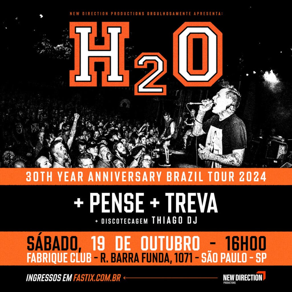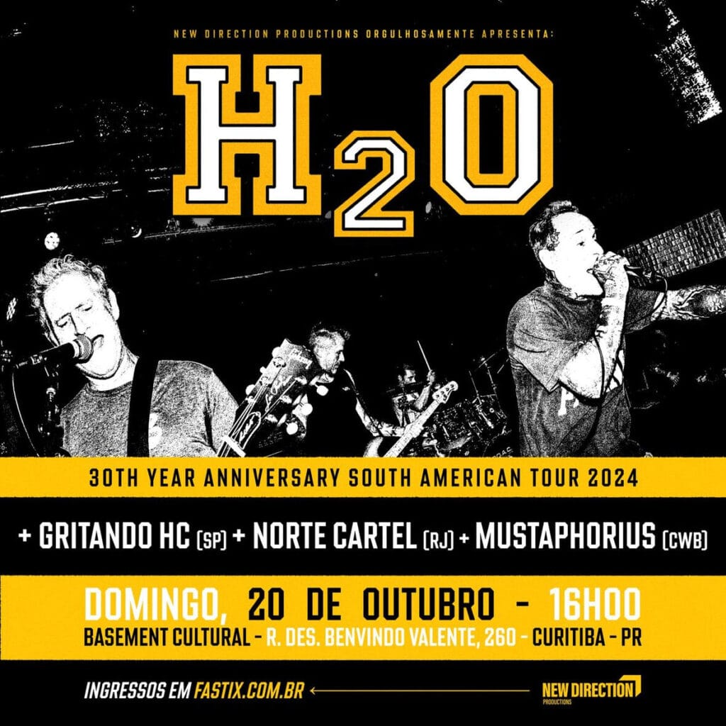 A consagrada banda de hardcore nova-iorquino H2O chega ao Brasil neste fim de semana para duas apresentações em que celebra 30 anos de carreira. Estes ainda serão os últimos shows da banda em solo brasileiro, segundo o próprio vocalista Toby Morse. O H2O toca em São Paulo/SP (19/10, Fabrique Club) e em Curitiba/PR (20/10, Basement Cultural).
