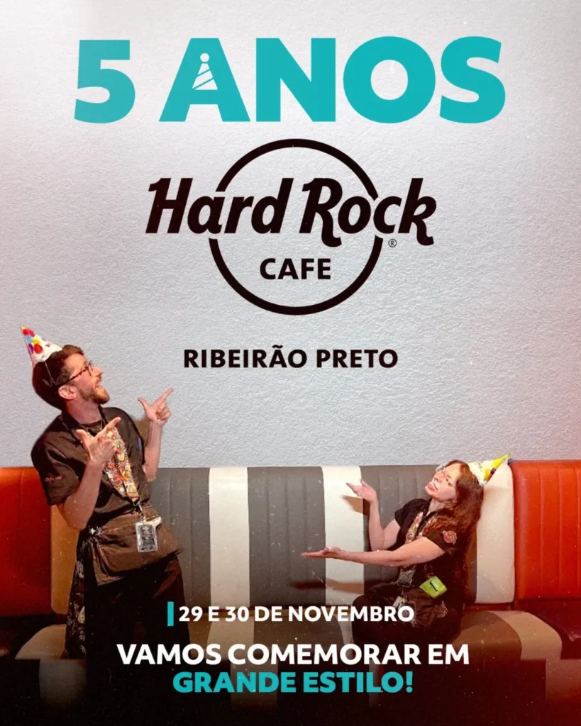 O Hard Rock Cafe Ribeirão Preto celebra os seus 5 anos com uma comemoração especial. A programação promete reunir boa música, gastronomia e experiências marcantes no melhor estilo Hard Rock.