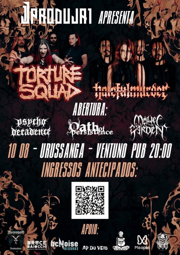 Hatefulmurder e Torture Squad, dois dos maiores nomes do metal nacional, irão levar uma calorosa apresentação para duas cidades de Santa Catarina.