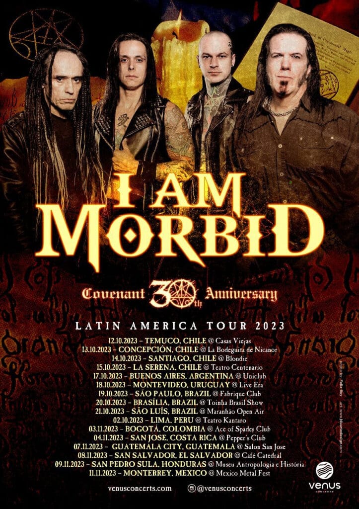 As apresentações do I Am Mobid no Brasil em 2023 trarão o citado álbum Covenant na íntegra e outros clássicos do Morbid Angel. Covenant foi lançado em junho de 1993 pela Earache Records na Europa, pela Giant Records na América do Norte e, posteriormente, ganhou mais versões ao redor do mundo.