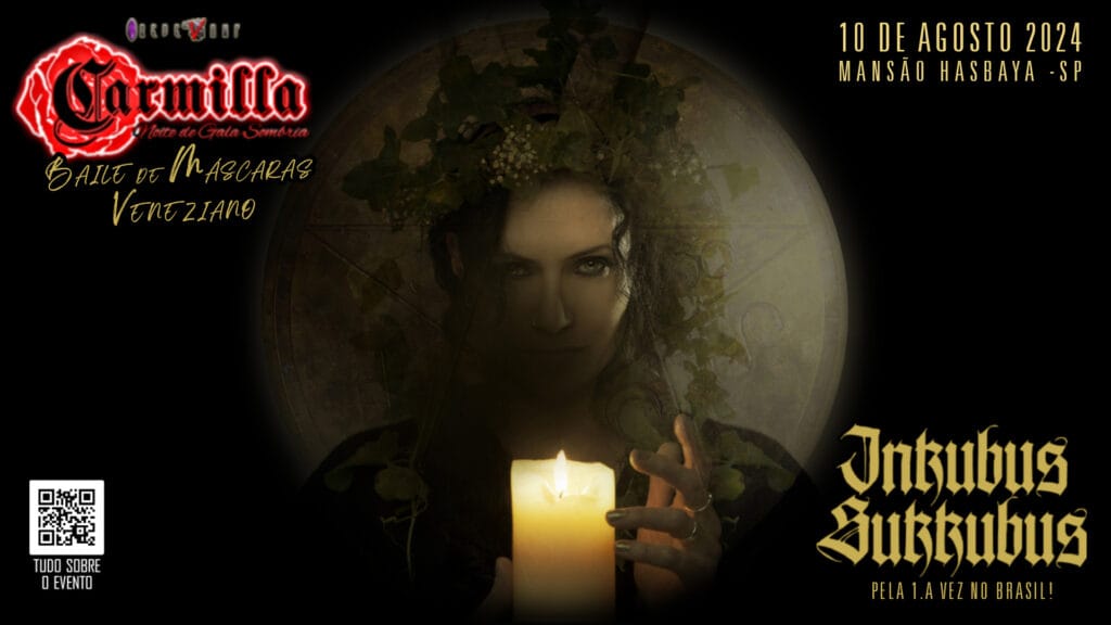 O Inkubus Sukkubus, que atualmente promove o álbum “She of a Thousand Names”, mesmo nome do game criado e idealizado pelo músico Tony McKormack, está excursionando e apresentando seu show acústico “Tales of Witchcraft & Wonder” na Europa. Com 35 anos de história no gothic rock e mais de 25 álbuns, a banda formada em Gloucestershire (ING) por Candia Ridley, Tony McKormack e Adam Henderson, virá pela primeira vez ao Brasil como atração principal da Carmilla Noite de Gala Sombria 2024. O repertório e o imaginário da banda são repletos de letras e melodias evocativas que celebram e revivem histórias de bruxas, vampiros, deusas, deuses, Santa Muerte, sereias, belladonna, acônito, mandrágoras, ciganos, goblins, ninfas, poltergeists, sabás e outras.