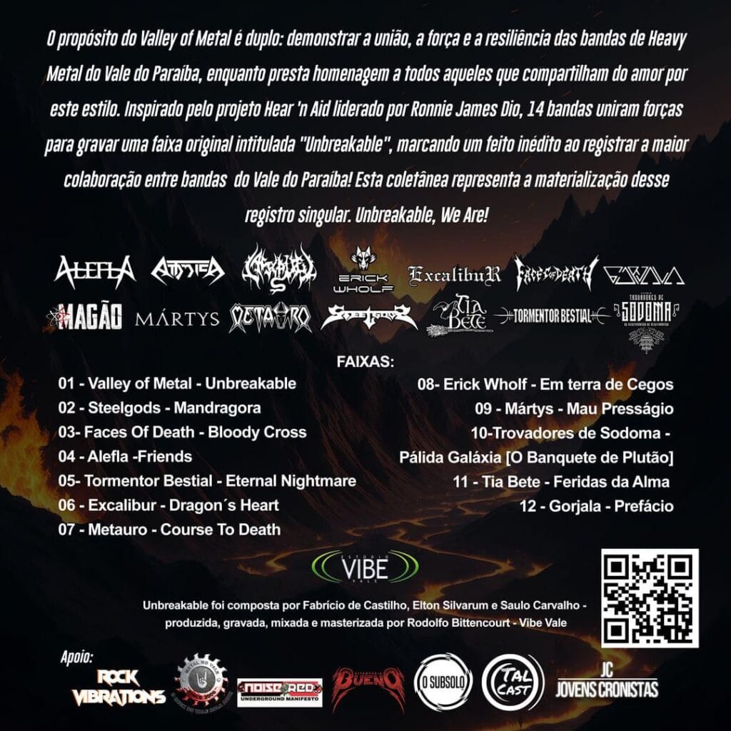 Preparem seus amplificadores e abram suas cabeças, pois o Valley of Metal está aqui! Um álbum coletivo que reúne 14 bandas da cena underground do Vale do Paraíba, explodindo com força e resiliência.