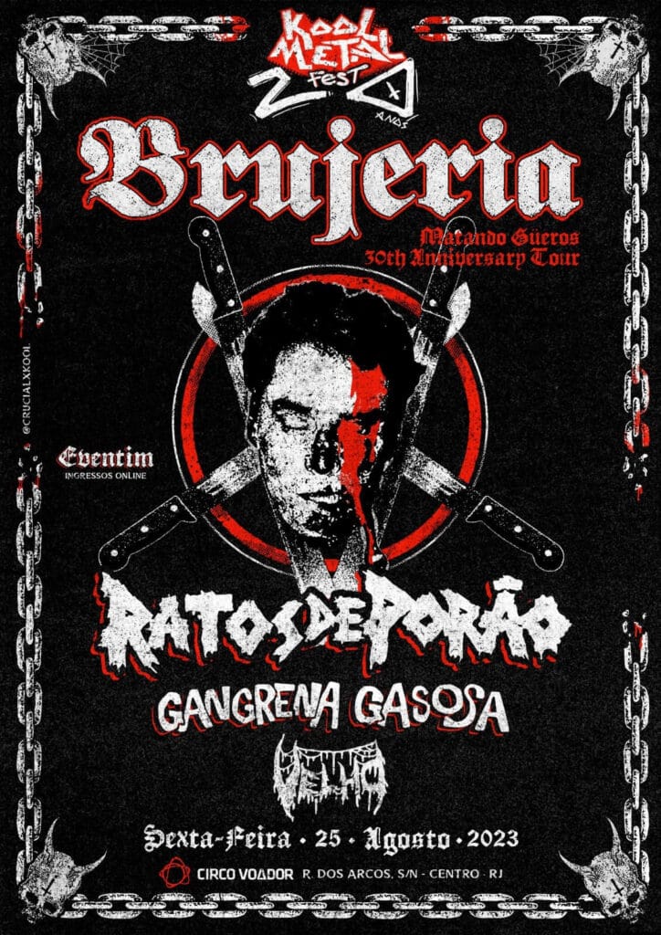 Neste Kool Metal – 20 anos no Rio de Janeiro, a atração principal é o Brujeria com a turnê que exalta os 30 anos do seu disco de estreia, o seminal Matando Güeros.