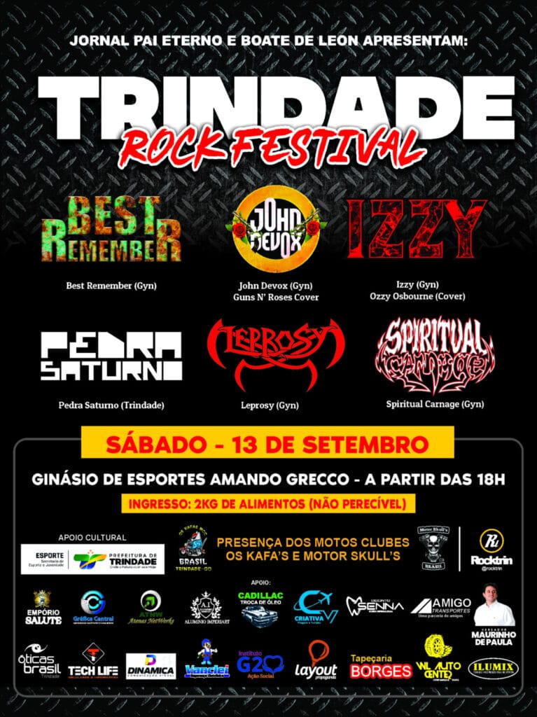 O evento será realizado no Ginásio de Esportes Amando Grecco e contará com um line-up que celebra o rock e o metal local, incluindo as bandas Best Remember, John Devox, Izzy, Pedra Saturno e Spiritual Carnage. O festival tem caráter beneficente, com entrada mediante a doação de 2 kg de alimento não perecível. Confira abaixo o cartaz de confirmação e o serviço completo para mais informações: