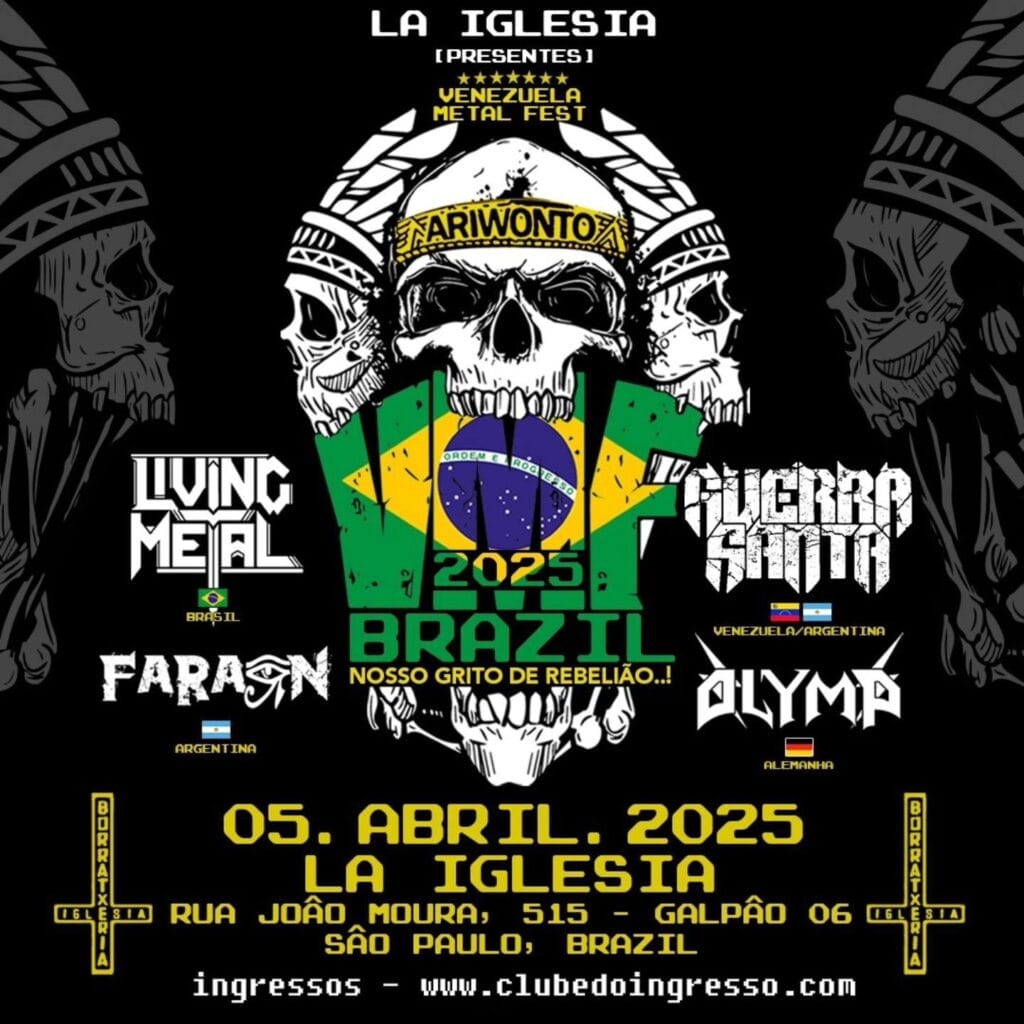 Nos dias 04 (sexta-feira) e 05 de abril (sábado) acontecerão as duas edições brasileiras do “VMF -Venezuela Metal Fest”, com as bandas Living Metal (Brasil), Olymp (Alemanha), Guerra Santa (Venezuela/Argentina) e Faráon (Argentina).