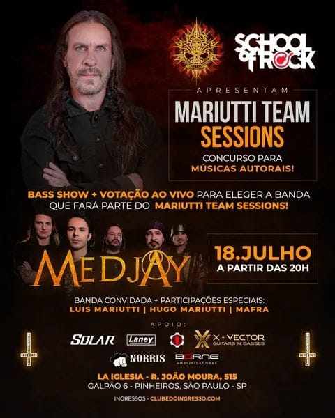 O renomado baixista brasileiro Luis Mariutti, em parceria com a School of Rock, anunciou o Mariutti Team Sessions, um concurso cultural que vai selecionar uma banda ou artista independente para a produção profissional de um single. O projeto inclui produção musical assinada por Luis Mariutti, além de gravação, mixagem e masterização em estúdio profissional e apoio estratégico na divulgação por meio do Mariutti Team. Os vencedores ainda poderão participar do Stand Mariutti Team na Feira Conecta + Música e Mercado, um dos principais eventos do setor no país.