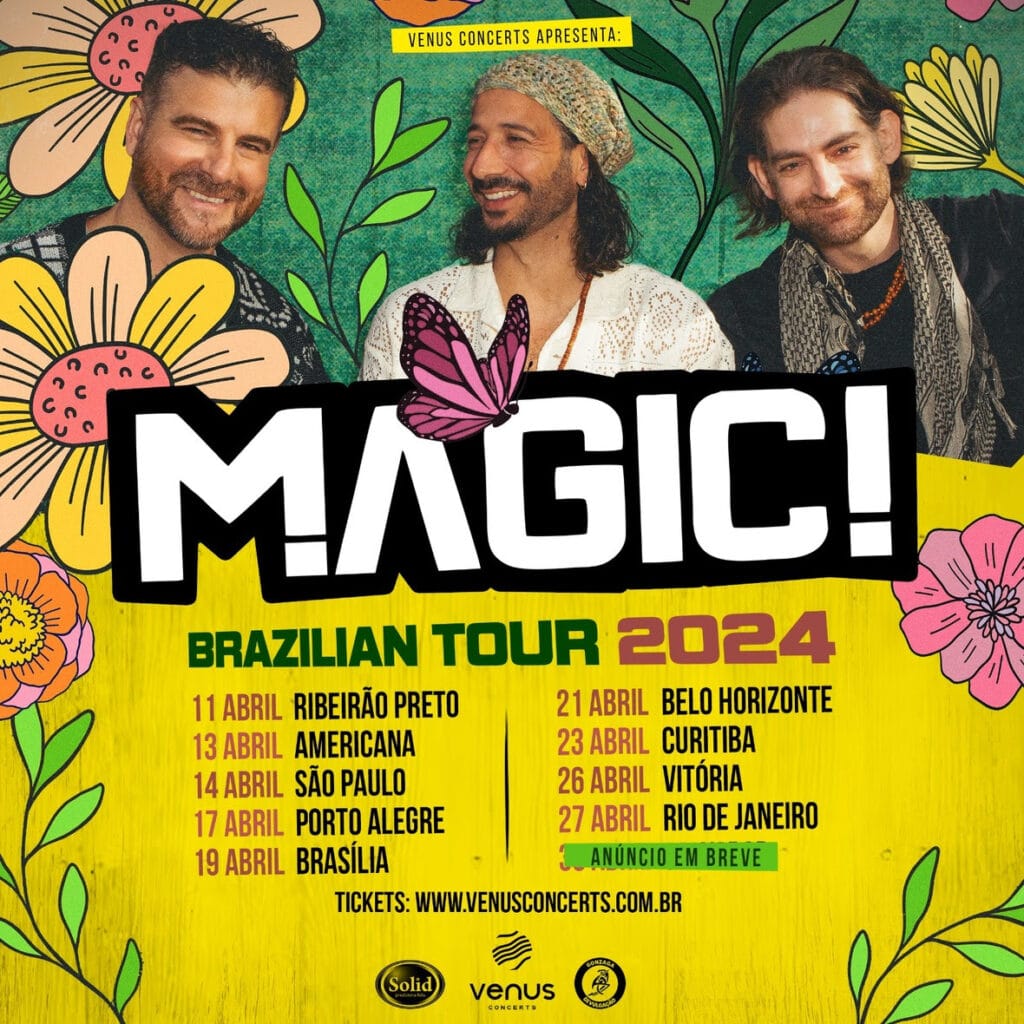 Fenômeno da música pop da década passada, o trio canadense Magic! enfim retorna ao Brasil para uma extensa turnê, de 10 shows. A banda mais famosa do mundo de reggae fusion já cravou os megahits ‘Rude’ e ‘No Way No’, foi atração do Rock in Rio 2015 e até hoje aparições em rádios e TVs de todo o globo.