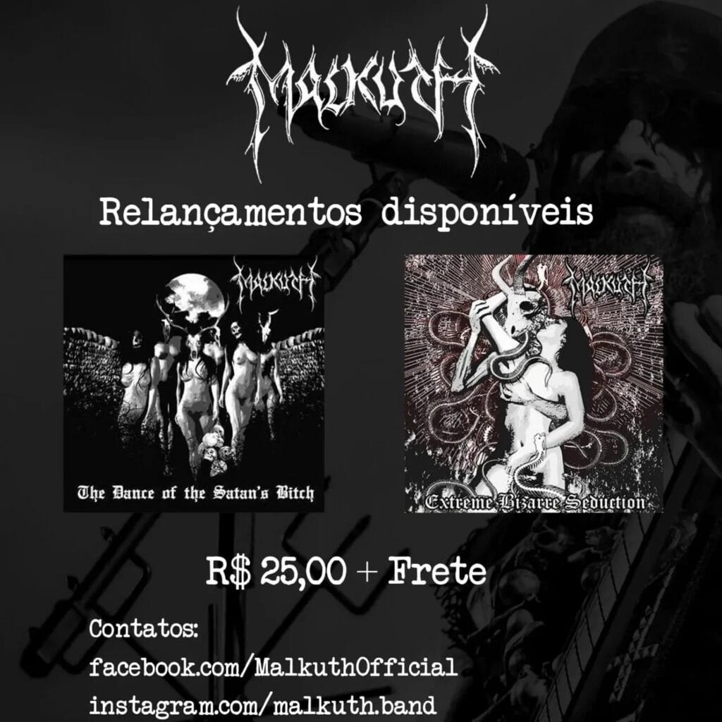 Em outras notícias, o MALKUTH anunciou recentemente que está com nova formação. A banda divulgou em suas redes sociais o retorno do baixista Ghoul e o ingresso do baterista Goat, que seguirão ao lado do vocalista e guitarrista Sir Cernunnus Ashtaroth e do guitarrista Azazel com os trabalhos de composição e gravação do seu novo álbum. Confira o anúncio oficial AQUI: https://www.instagram.com/p/C2L3IQ3gY2u/