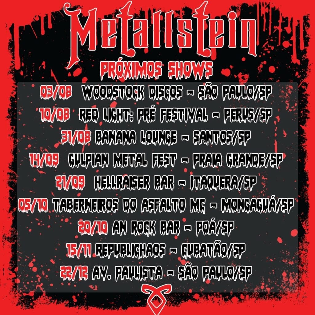 Paralelamente, o METALLSTEIN confirmou presença no show de lançamento do álbum “Messengers Of Chaos”, do Hierarchical Punishment, que acontecerá no HellRaiser Rock Bar, em São Paulo/SP, no dia 21/09. Confira: