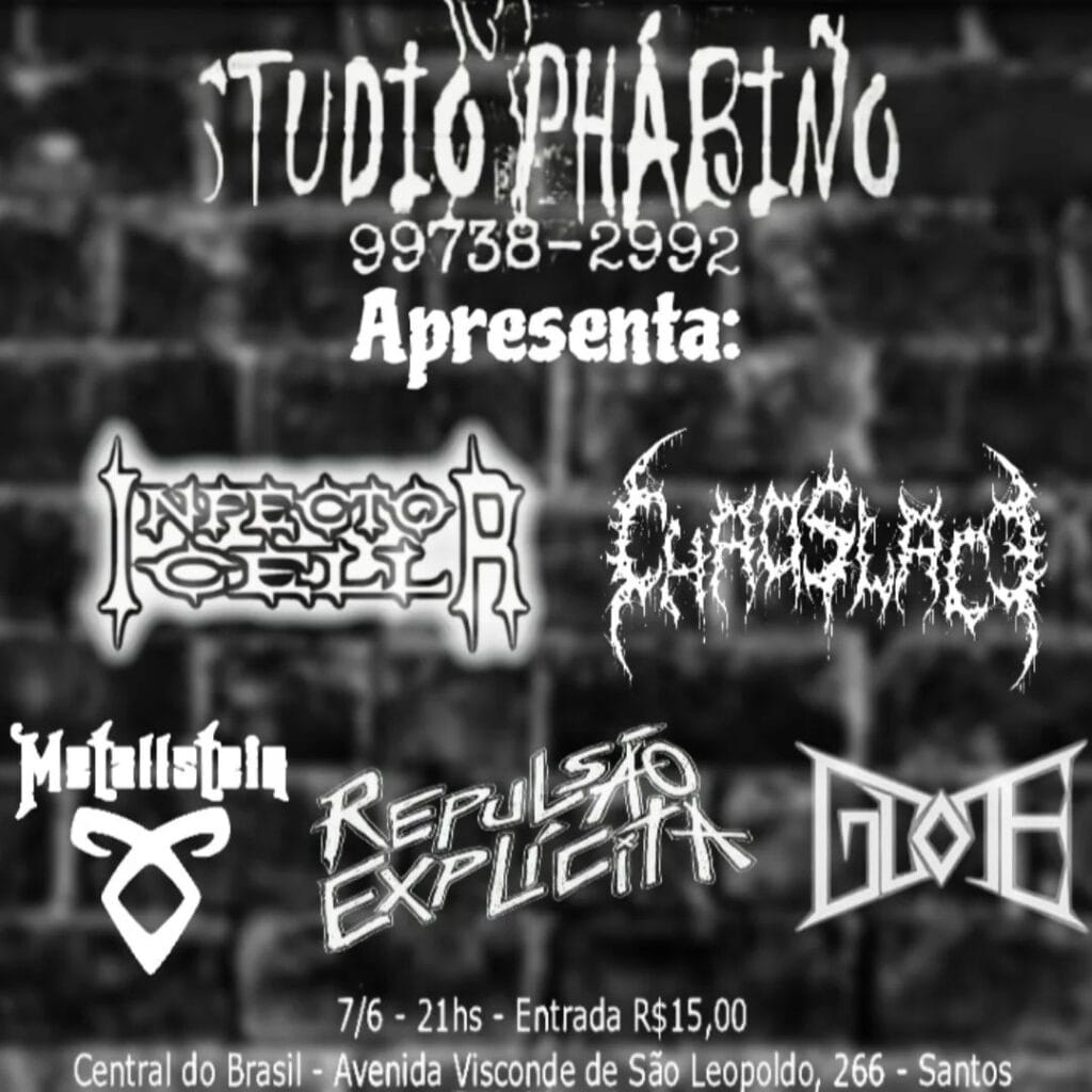 Encerrando o primeiro semestre com força total, a METALLSTEIN já tem outro compromisso confirmado. No próximo dia 7 de junho, o grupo desembarca em Santos/SP, onde se apresenta no espaço Central do Brasil ao lado das bandas ChaoslaceGloteRepulsão Explícita e Infector Cell. A noite promete reunir o underground do litoral paulista em um evento organizado pela Studio Phábiño. Confira: