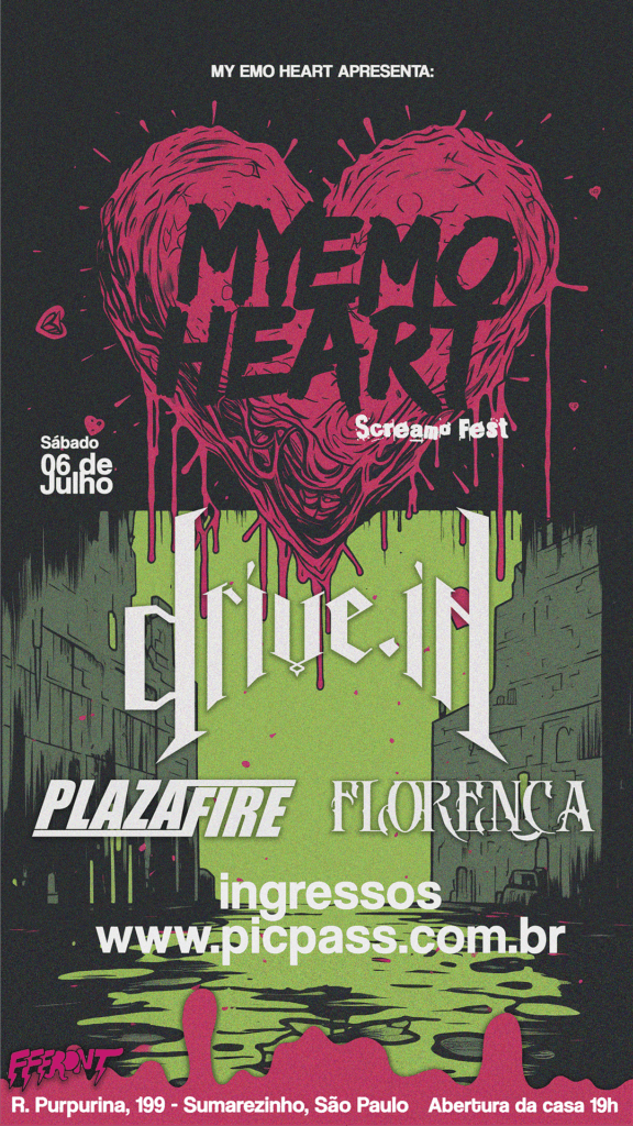 Agora, em 2024, estamos prontos pra dar vida a um sonho muito antigo: a primeira edição do “Myemoheart Fest – Screamo Fest”. Vai rolar no dia 6 de julho, no FFFRONT, um espaço já conhecido na cena underground de SP que já recebeu grandes nomes da cena como “Metade de Mim”, “Zander”, “Fim do Silêncio”, entre outros.