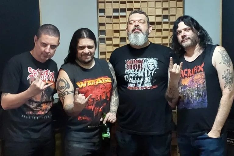 Sacrifix – Formado em 2020, é hoje um dos grandes nomes do Old School Thrash Metal no Brasil e no exterior. Sua sonoridade resgata a agressividade e a energia dos anos 80, com influências de Slayer, Sodom, Exodus e Kreator. Seus álbuns e EPs receberam excelentes avaliações da crítica e ótima recepção dos fãs ao redor do mundo, resultando em um número significativo de audições nas plataformas digitais, além do rápido esgotamento das edições físicas. Entre seus lançamentos estão os álbuns World Decay 19 (2021), o brutal Killing Machine (2023) e seu mais recente EP, Let’s Thrash. Com letras afiadas e riffs avassaladores, Frank Gasparotto (vocal/guitarra), Fábio Moysés (bateria), Diego Domingos (guitarra) e Filippe Tonini (baixo) prometem sempre um show explosivo, sem concessões – e, principalmente, sem frescura e misericórdia!