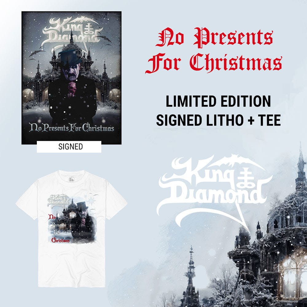A época do Natal está aqui novamente! No Presents for Christmas da King Diamond foi originalmente lançado em 1985 e agora a Metal Blade Records está relançando este clássico de 2 faixas em vinil, bem a tempo para a Black Friday. No Presents for Christmas apresenta nova capa e está disponível mundialmente em duas novas cores de vinil. O lado 1 apresenta a faixa-título, ” No Presents for Christmas ” e o lado 2 apresenta ” Charon ” (de “Fatal Portrait”). Em homenagem ao lançamento, a banda também trabalhou com sua empresa de produtos norte-americana para oferecer uma litografia assinada pelo próprio King Diamond .