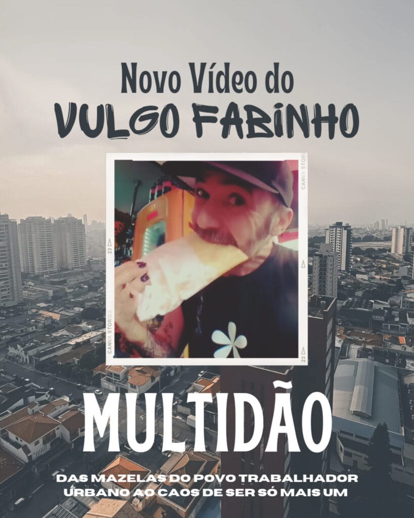 Autodefinido como “violeiro, antifascista y otras cositas más”, o cantor O Vulgo Fabinho vem lançando uma série de singles de voz-e-violão elétrico, numa onda meio folk e (às vezes) meio punk, com letras críticas. Dessa vez sai o quarto single de Fabinho, Multidão. Uma música que, segundo o próprio, é inspirada no dia a dia do trabalhador urbano em São Paulo. E que “traz a subjetividade do caos de ser só mais um no meio da multidão das grandes metrópoles”.