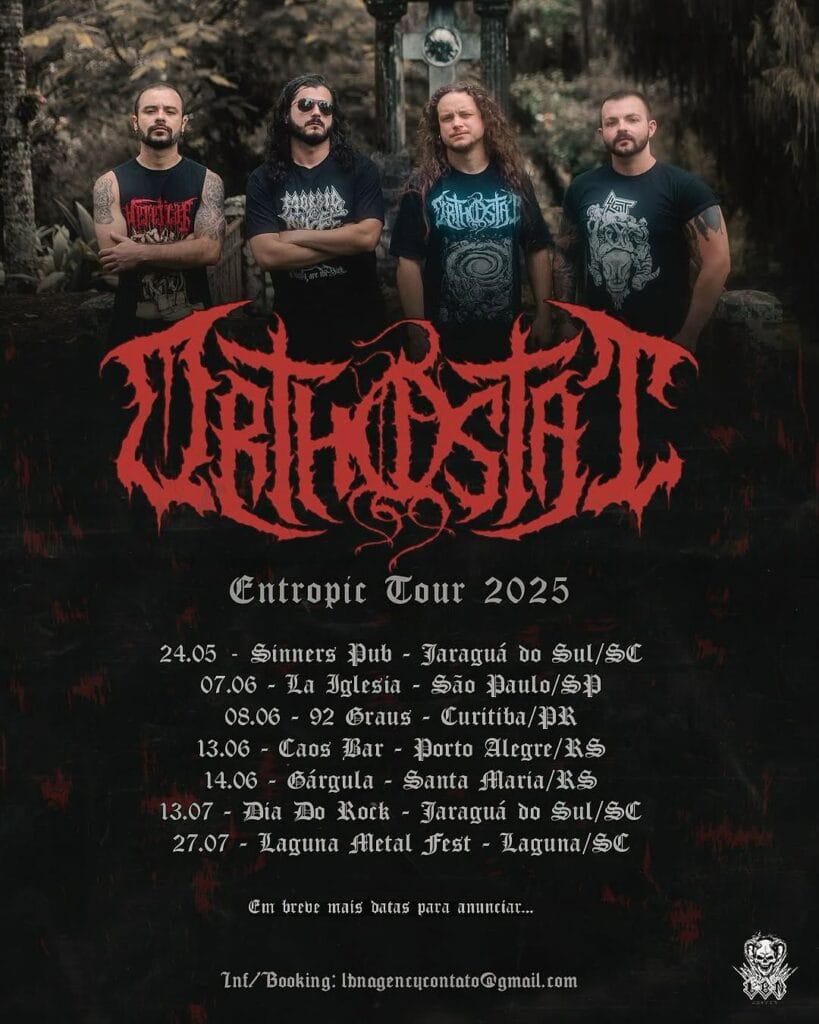 Confirme supracitado o ORTHOSTAT vai cruzar estradas em 2025. A banda anunciou oficialmente sua nova turnê, intitulada ‘Entropic Tour 2025’, revelando o cartaz oficial e as primeiras datas, que incluem shows em Santa Catarina, São Paulo, Paraná e Rio Grande do Sul. A turnê está sendo organizada pela LBN Agency, responsável também por agenciar as propostas de novas datas. Confira: