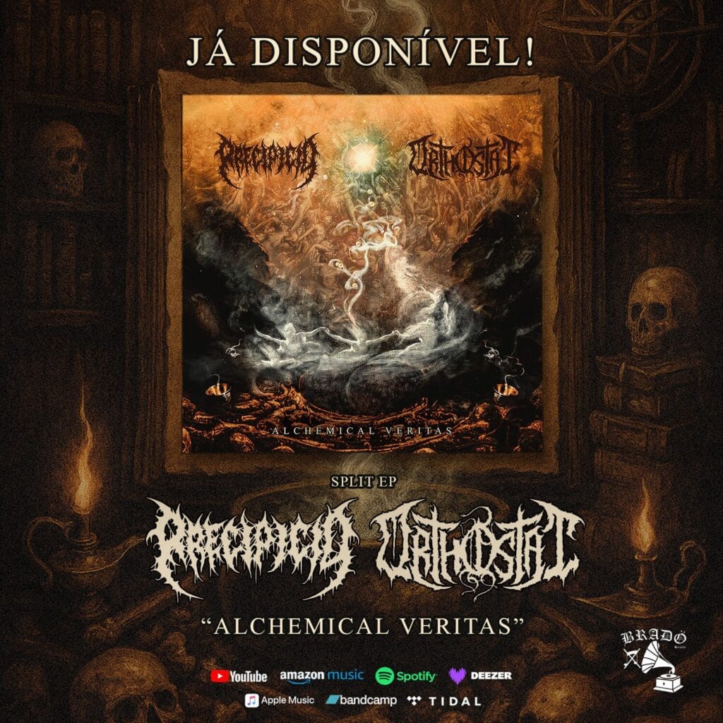 Foi oficialmente lançado nesta terça-feira, 10 de junho, o split EP “Alchemical Veritas”, resultado da parceria entre as bandas catarinenses ORTHOSTAT e Precipício. Com duas faixas inéditas de cada grupo, o trabalho chega com força total às principais plataformas de streaming e download, sob os selos Brado Records e Sangue Frio Records.
