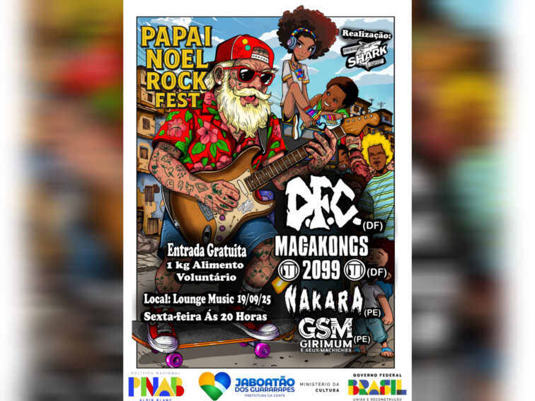 A cena underground pernambucana se prepara para um evento que promete unir música pesada e solidariedade. O Papai Noel Rock Fest, que acontece nesta sexta-feira, 19/09/25, no Lounge Music, em Jaboatão dos Guararapes, traz um line-up de peso com bandas de Brasília e Pernambuco.