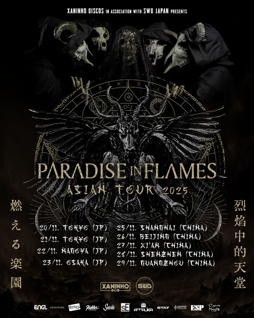 A excursão passará por Japão e China, levando o som extremo mineiro a novos públicos e reforçando a presença do metal brasileiro nos palcos internacionais. O primeiro show ocorre dia 20 de novembro em Tóquio e a turnê contará com nove datas em 14 dias, em um itinerário intenso que inclui deslocamentos aéreos e terrestres por diversas cidades dos dois países. “Estamos realmente ansiosos e gratos em relação a essa oportunidade. Ansiosos, pois teremos uma logística bem desafiadora e corrida para cumprirmos devido aos shows agendados: serão 9 shows em 14 dias, fora o tempo dentro de aviões e vans. Gratos, pois é uma oportunidade única poder conviver com pessoas do outro lado do mundo celebrando a música e vivenciando um pouco de sua cultura, de sua sociedade. Espero que vejamos muitas paisagens e construções bonitas e possamos experimentar comidas deliciosas!”, declarou o tecladista Guilherme de Alvarenga.