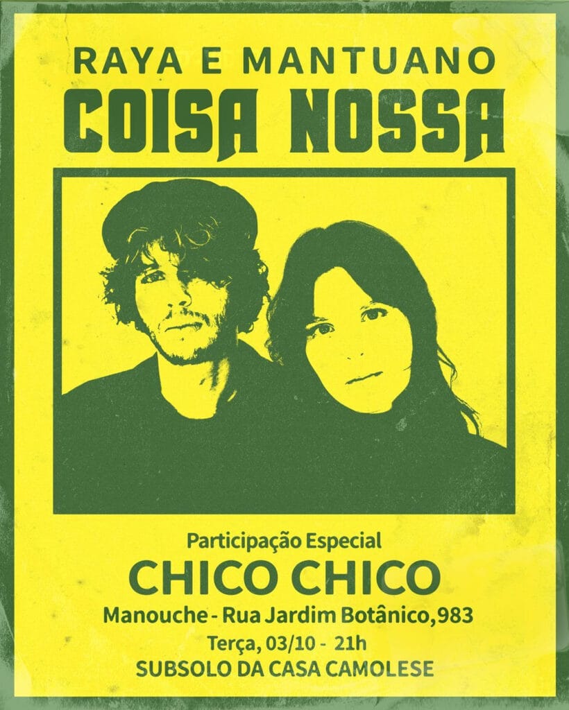 No próximo dia 3 de Outubro, no Manouche (Rio de Janeiro), Raya e Mantuano apresentam o show “Coisa Nossa” pela primeira vez com banda completa e participação do parceiro e amigo Chico Chico.