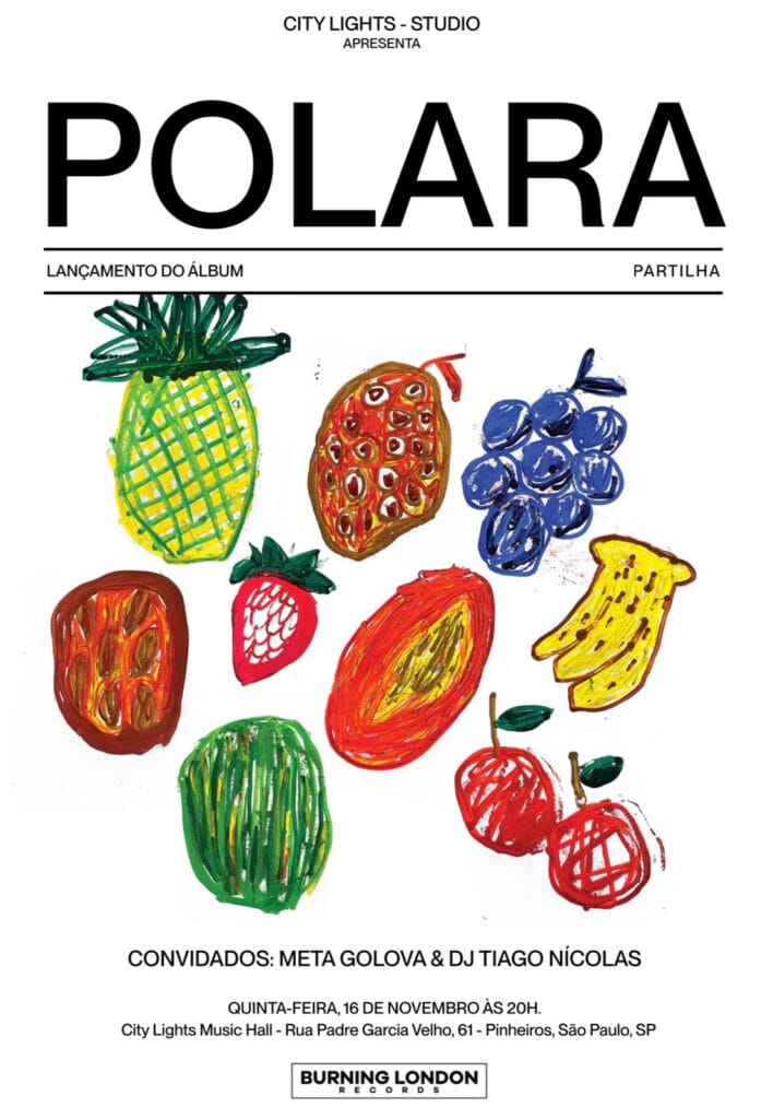 Após o lançamento do álbum “Partilha”, a banda Polara preparou um show especial de divulgação na capital paulista. A apresentação acontece na próxima quinta-feira (16) no CL Studio, que fica no mezanino do City Lights Music Hall, no bairro de Pinheiros.