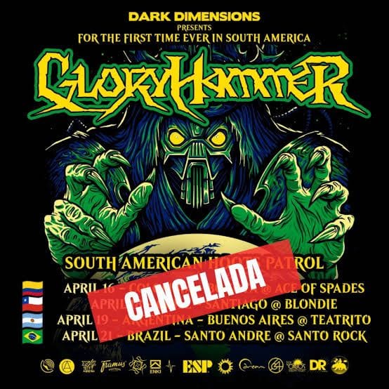 A produtora Dark Dimensions comunica, com pesar, o cancelamento de todos os shows da turnê latino-americana da banda inglesa Gloryhammer.