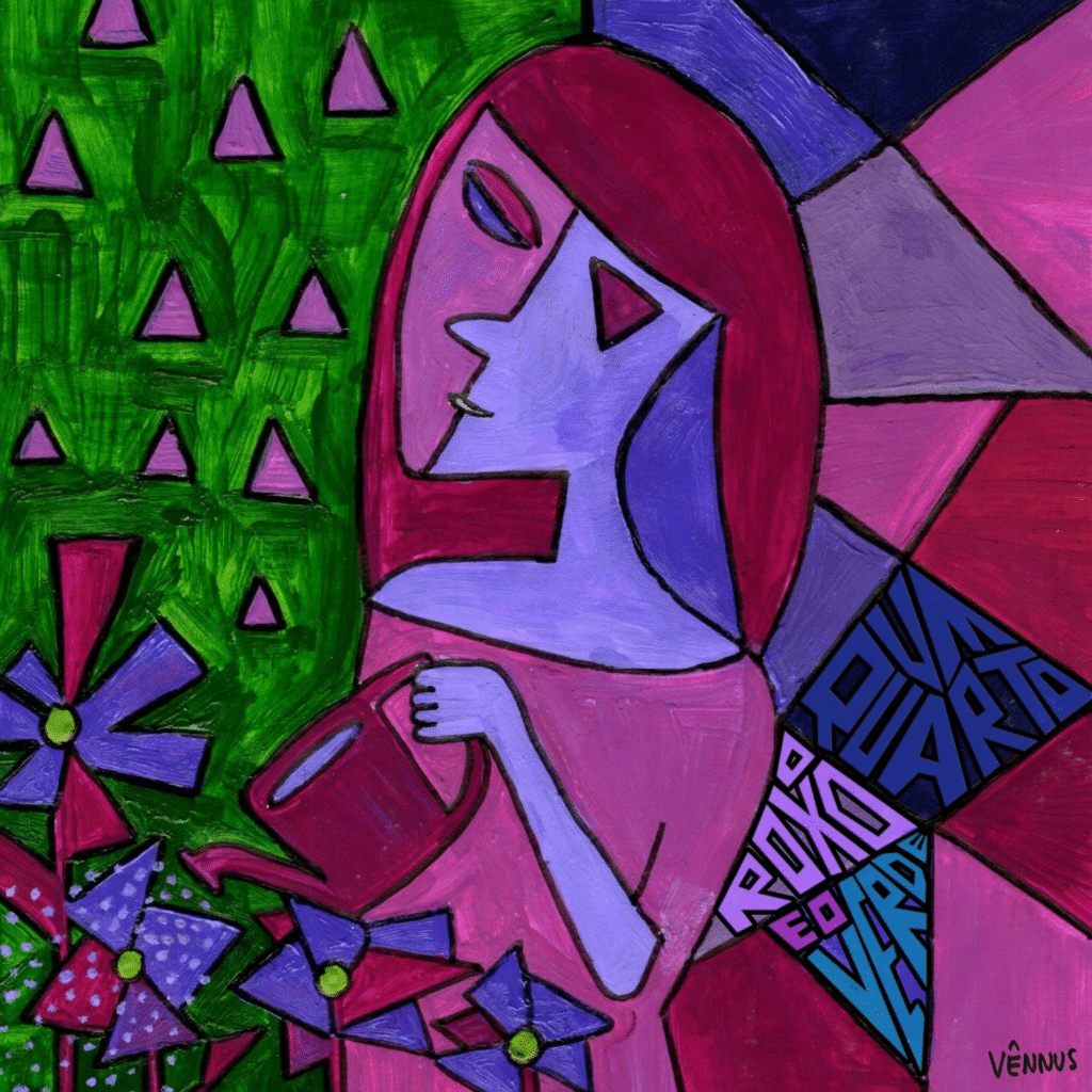 A capa do single é pintada à mão e representa uma das personagens da música “O Roxo e O Verde”. Assinada pela artista Josi Santos, conhecida como Vênnus, a arte já é uma inspiração do que será a futura capa de Fora de Lugar, terceiro álbum da banda, com previsão de lançamento para outubro de 2025.